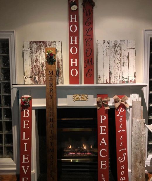 Personalized Porch Signs available in Christmas Red or natural wood. Signs can display whatever message you choose, or your family name.