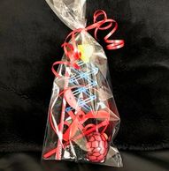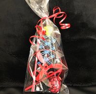 Smaller versions of Loot Bags with 1-3 items. This sample includes silly ankle socks and festive earrings.