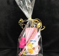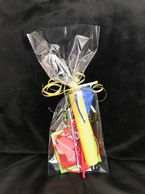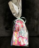 Smaller versions of Loot Bags with 1-3 items. This sample contains a Miniature Teddy Bear and keychain, and ring.