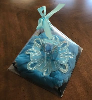 Perfect for announcing your new baby's gender - comes wrapped in a pink and blue organize bag or paper bag with pink and blue tissue paper